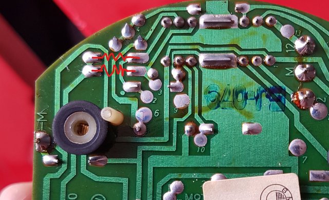 Hola, me he encontrado en 2 placas del velocímetro el condensador rojo que está situado al lado del chip, con soldadura fría. No se veía muy bien pero si movía el condensador se veía perfectamente el cable del condensador suelto en el punto de soldadura.